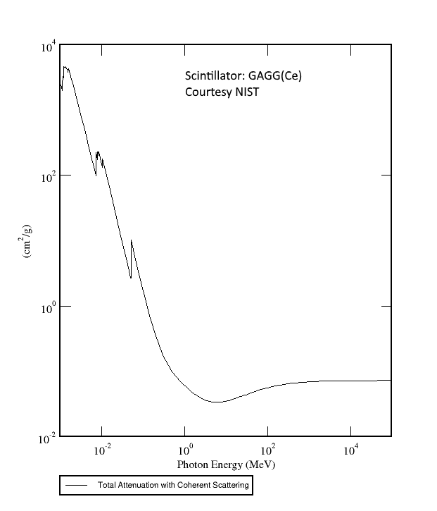 GAGG(Ce) - Gadolinium Aluminium Gallium Garnet (Gd₃Al₂Ga₃O₁₂), doped with Ce is a newly developed scintillator. It is one of the brightest available scintillators with an emission peak at 520nm. GAGG(Ce) has good stopping power, is physically rugged and and well suited to a broad range of applications.